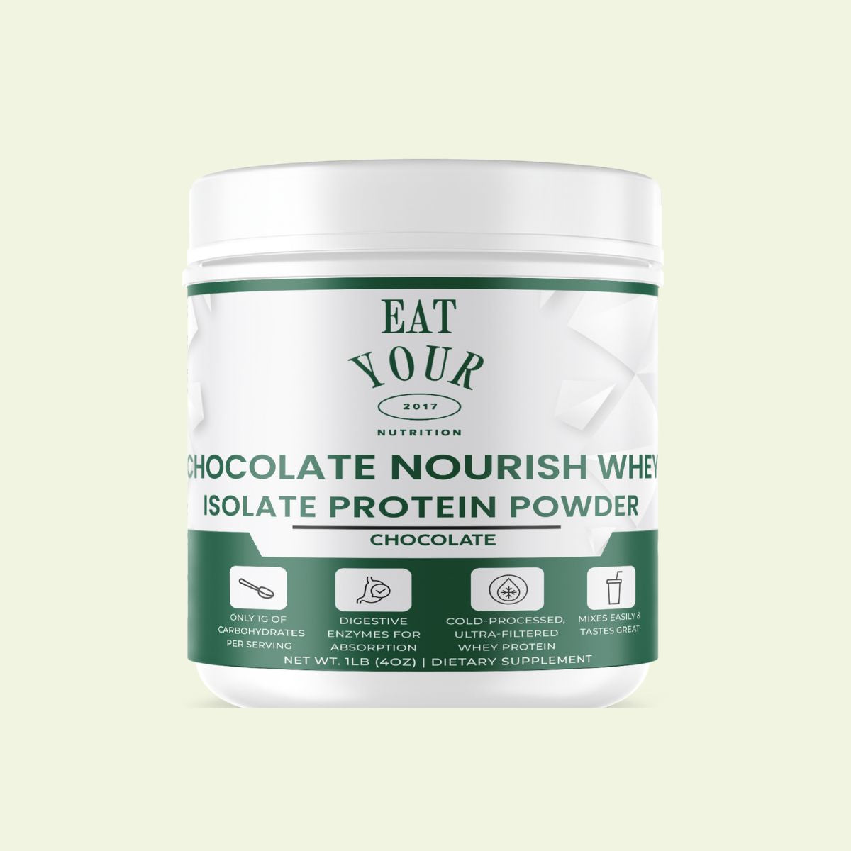 Eat Your Nutrition's chocolate whey isolate protein tastes delicious, never chalky, and provides 25 grams of protein per serving. Made to keep you satisfied with no artificial sweeteners, colors, or flavors. Ships out quickly from the USA.